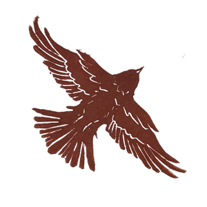 Rubine red on antique white.